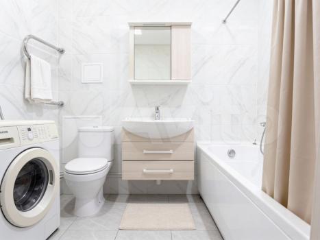 Санузел совмещенный, выполнен в светлых тонах. В наличии шкафы для хранения вещей. Балкон позволяет наслаждаться свежим воздухом.