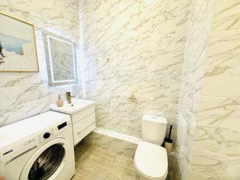 В квартире выполнен косметический ремонт, что создает приятную атмосферу для проживания. Здесь есть все необходимое: кондиционер, холодильник, посудомоечная машина, телевизор и стиральная машина. Мебель присутствует как в комнате, так и на кухне. Ванная комната оборудована ванной, что идеально для комфортного отдыха после насыщенного дня.