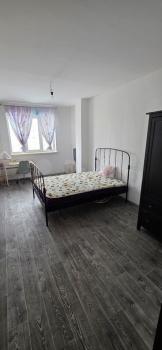 Просторная жилая комната оснащена необходимой мебелью: двухспальная кровать с матрасом (120х200), просторный диван (разбирается в двухместное спальное место), небольшая стенка для хранения вещей, компьютерный стол, комод для одежды.