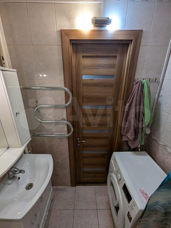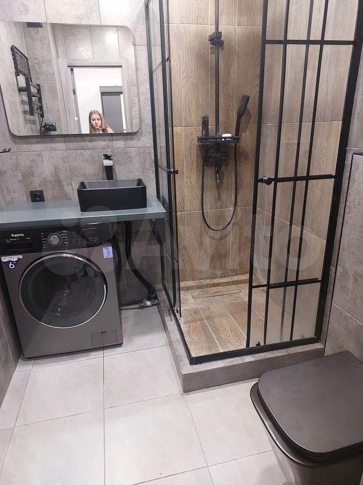 Cанузeл cовмещeнный, oформлен качecтвенной плиткой, устaнoвлeна душевая и стиральная машина. Лоджия застеклена, с видом на городскую панораму и лес.