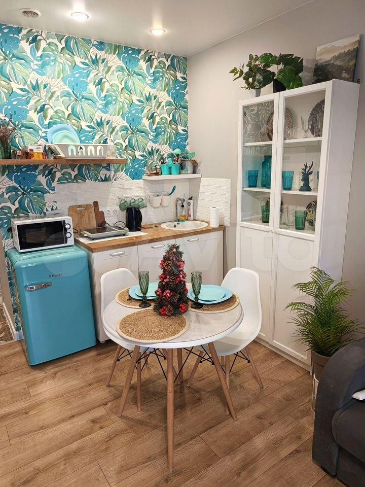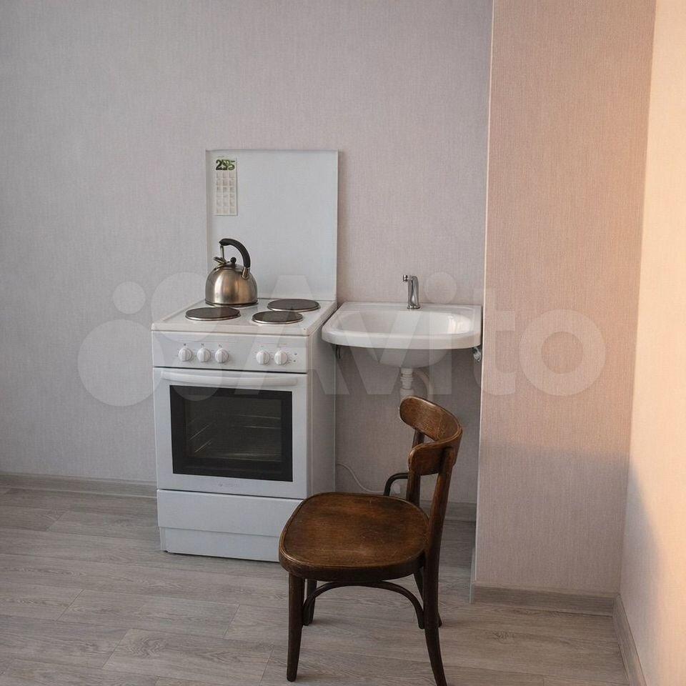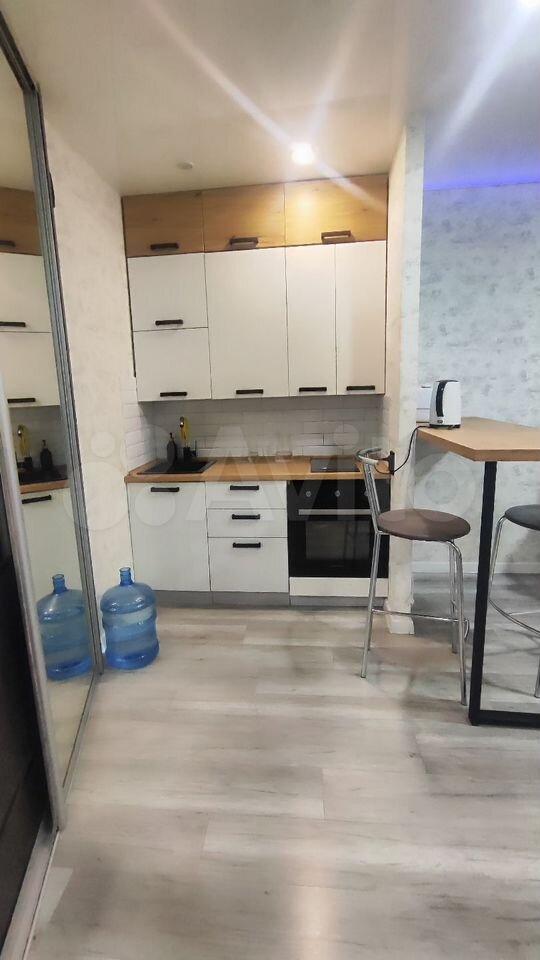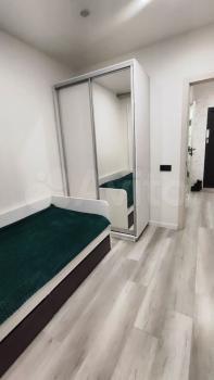 Кухня оборудована необходимой техникой, включая плиту и чайник. Имеется вместительный шкаф для хранения вещей. В комнате установлен удобный диван и шкафы для одежды.
