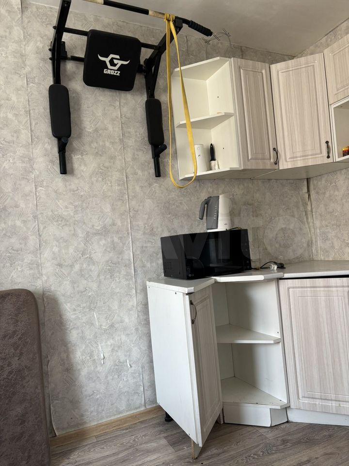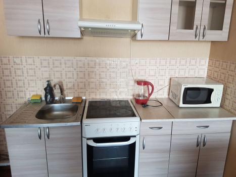 Квартира расположена на 7 этаже панельного дома с двумя пассажирскими лифтами. Из мебели имеется вместительный шкаф и диван, а также необходимая бытовая техника: холодильник, стиральная машина и микроволновая печь.