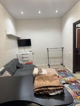 Кухня оборудована необходимой бытовой техникой, включая холодильник и электро плиту. В комнате установлены шкафы для хранения вещей. Санузел раздельный, оснащён современной сантехникой и стиральной машиной.