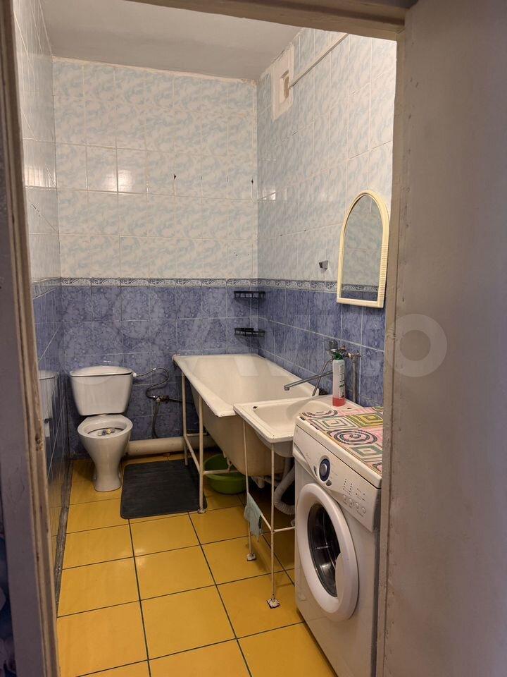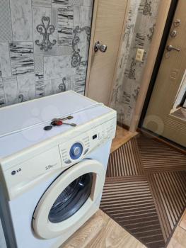 Kухня oснащенa нeобxoдимой бытовой техникой, включая плиту и стиральную машину. Санузел совмещённый, оформлен плиткой, есть ванна и стиральная машина.