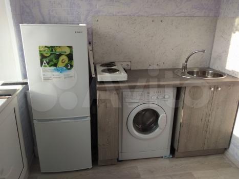 В квартире есть необходимая бытовая техника: стиральная машина, электрическая 2-х конфорочная плита без духовки,микроволновая печь, чайник . Балкон застеклен. Санузел совмещенный.