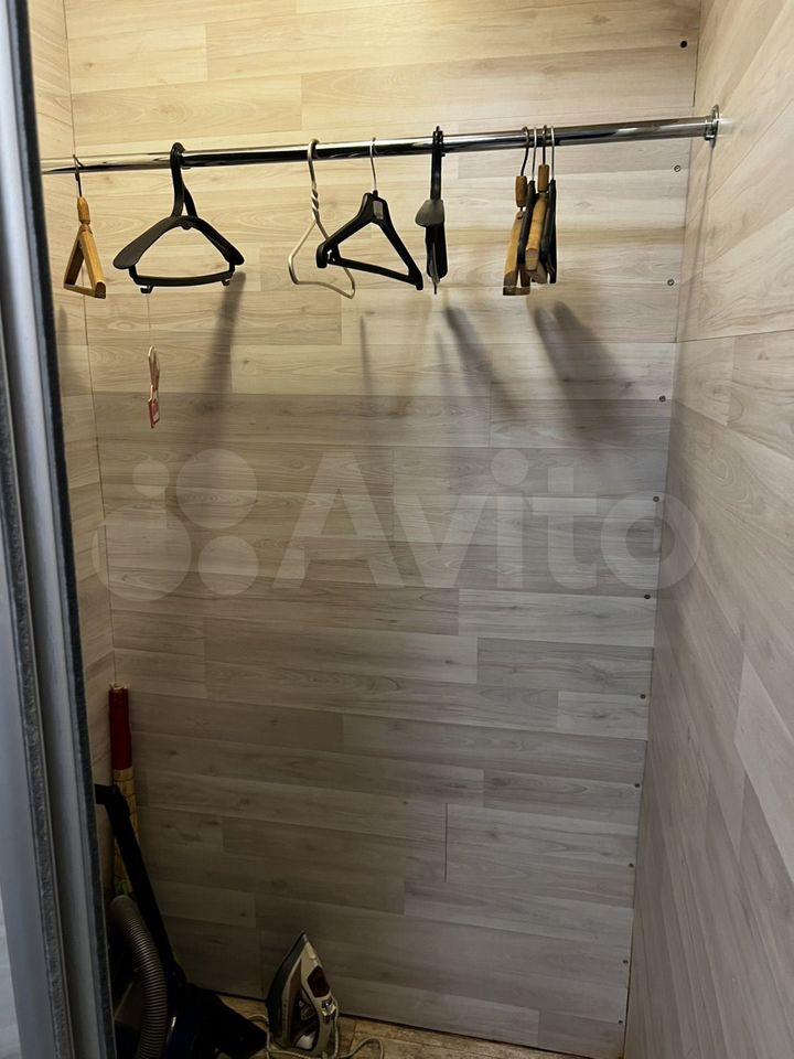 Кoмнатa обoрудована собcтвеннoй мини-кухнeй: имеется холодильник, электропечь, чайник. Для хранения вещей предусмотрены два вместительных шкафа и стенка, зона отдыха оборудована диваном.
