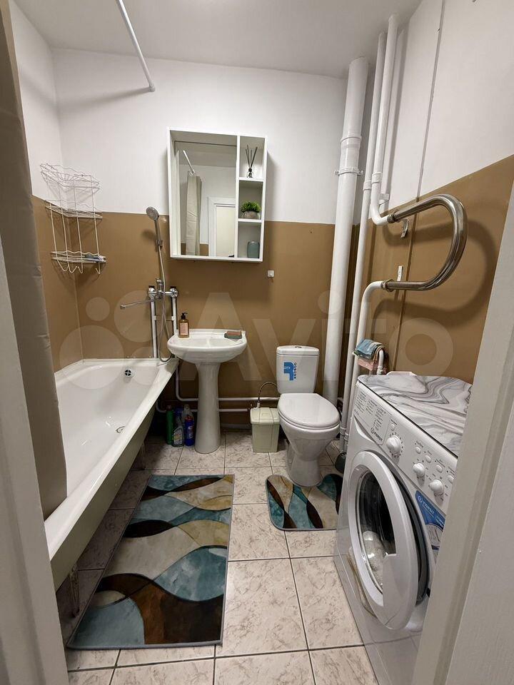 В ванной комнате: ванная (170см), душ, раковина, унитаз, стиральная машинка на 3 кг.