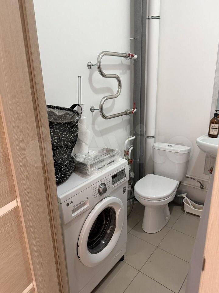 В ванной комнате: ванная (170см), душ, раковина, унитаз, стиральная машинка на 6 кг.