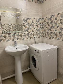 в квартире стиральная машинка. холодильник. кухонный гарнитур. печь. телевизор. кровать двухспальная...