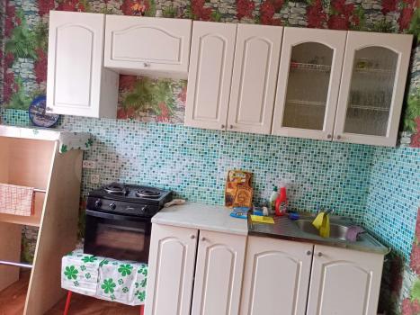 В квартире есть: кухонный гарнитур,печь,холодильник,диван ,стол,журнальный столик. Посуда.