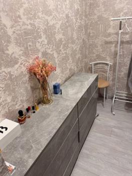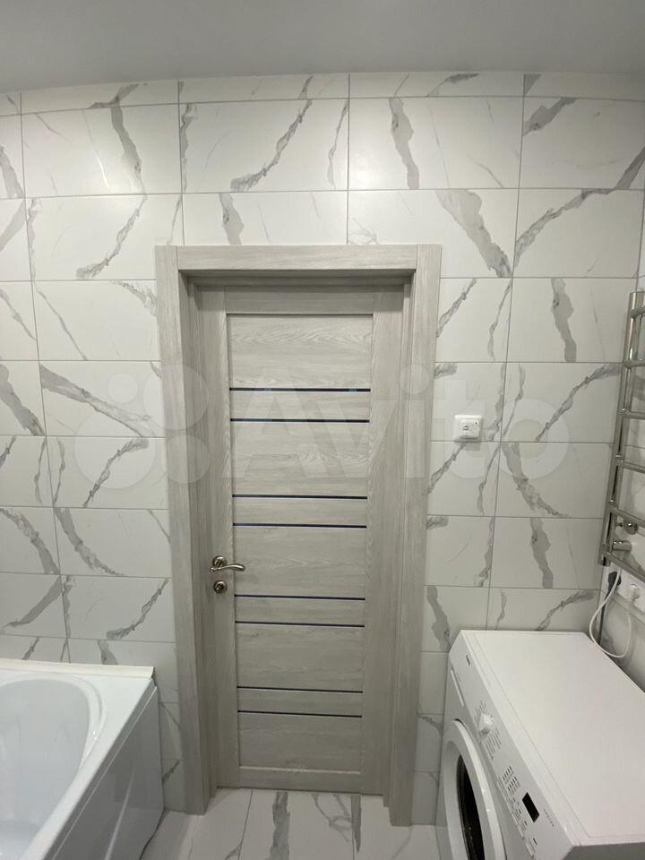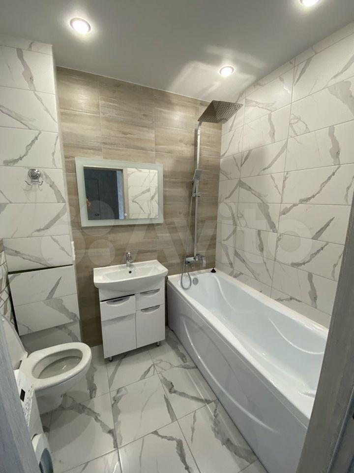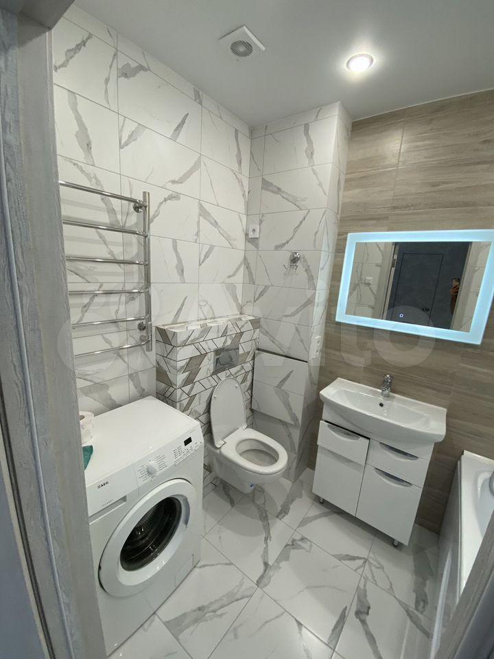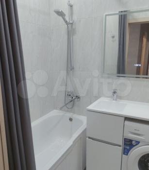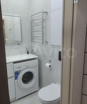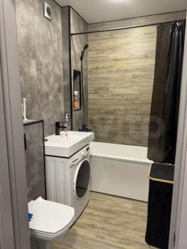 В квартире установлены шкафы и телевизор, что позволяет сразу заехать и жить без дополнительных покупок мебели. Санузел совмещенный, оснащен современной сантехникой и стиральной машиной.
