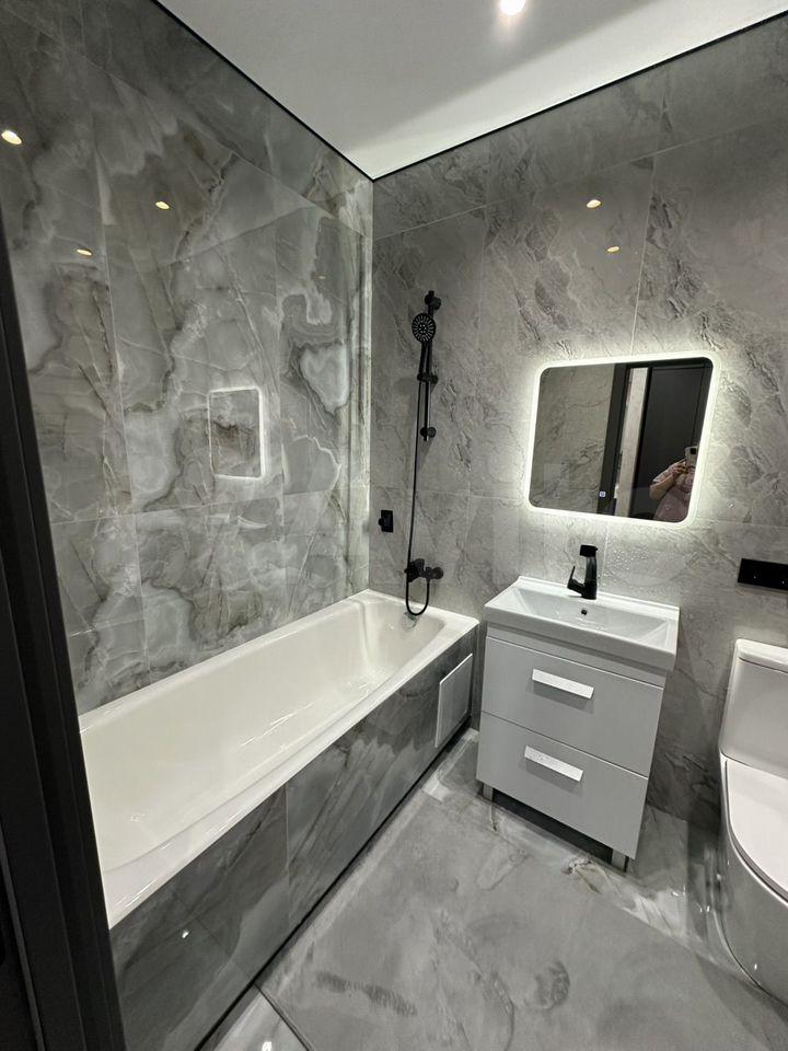 Отдельная гордость — ванная комната (8 м²). Это целый spa-уголок с большой ванной (190х90 см), качественной немецкой сантехникой, бидэ, элегантной раковиной и большим зеркалом. Каждое утро здесь будет начинаться с удовольствия.