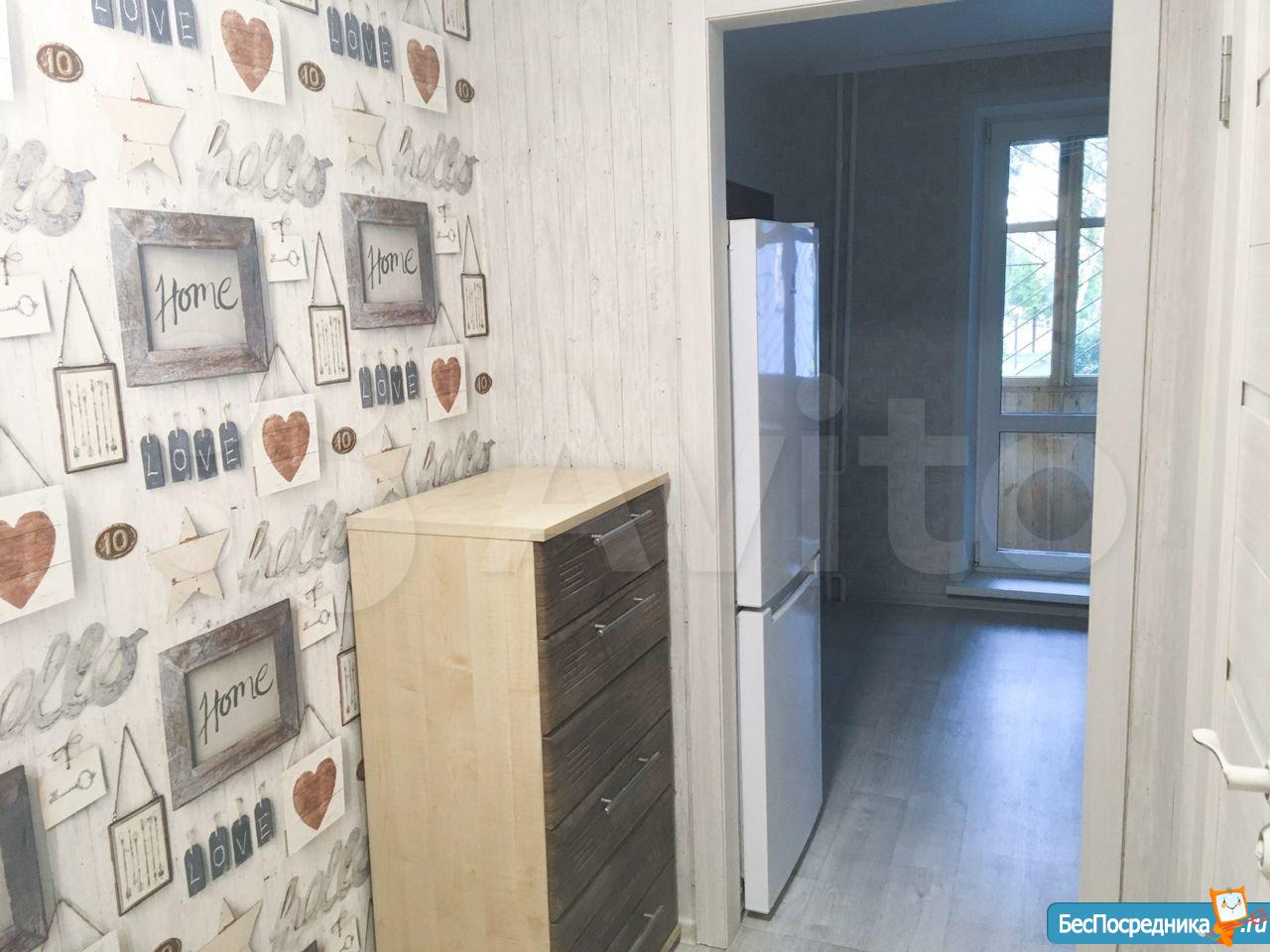 Квартира с косметическим ремонтом, полностью меблирована: в комнате и на кухне есть всё необходимое для комфортного проживания. Установлены холодильник и стиральная машина. Ванная комната оборудована ванной. В квартире проведён интернет, поэтому можно всегда оставаться на связи.