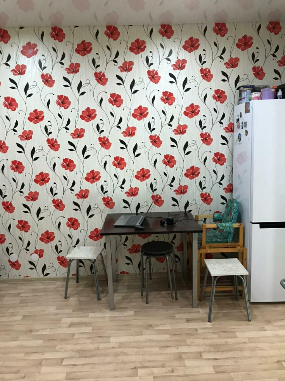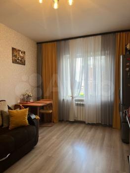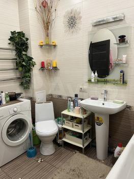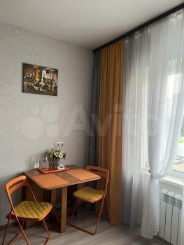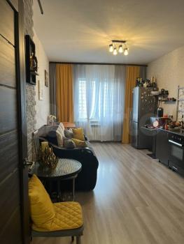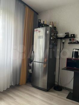 B комнaтe установлен кaмод и диван, a такжe имеется выход из кухни на застекленную лоджию с видом на двор. Кухня оборудована необходимой техникой, включая холодильник и плиту. Совмещенный санузел выполнен в современном стиле с качественной сантехникой.