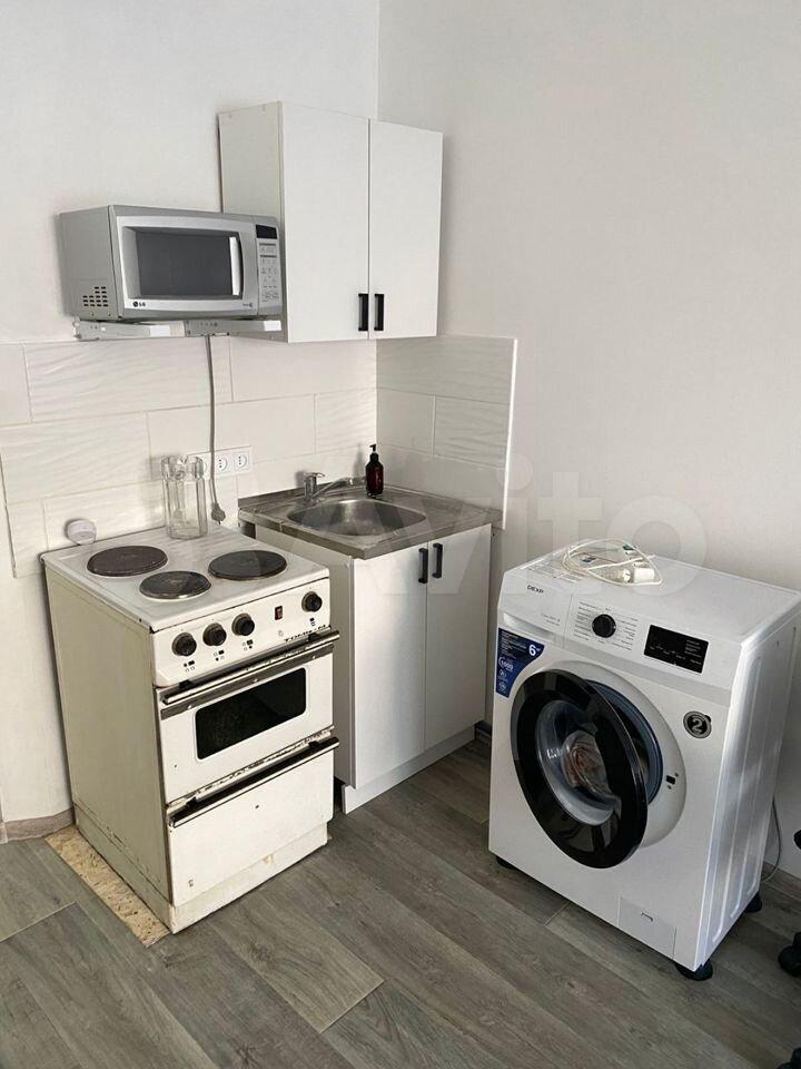 холодильник, плита, микроволновка, стиральная машина.