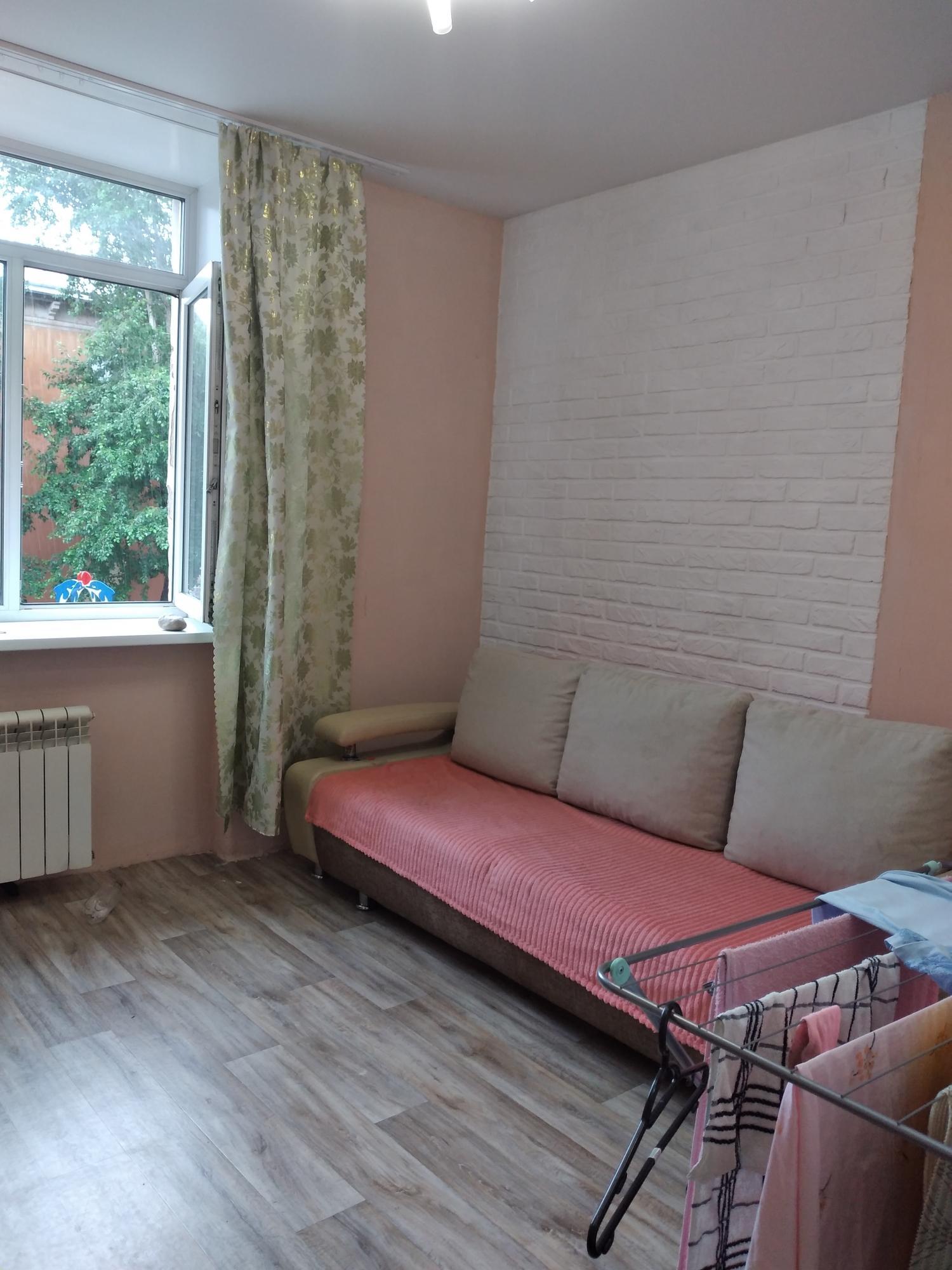 Кгт 18м в центре-возле Парка Ангелов, хороший ремонт. Общежитие тихое. Есть диван, микроволновка, холодильник, пылесос, духовка, маленькая плитка, мультиварка, душ. Школа, магазины в шаговой доступности.