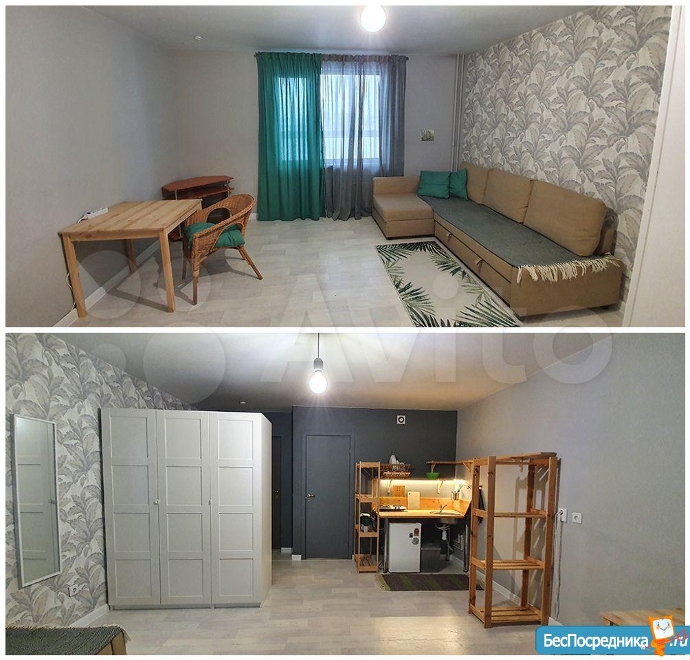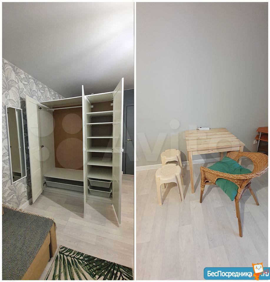 тёплая студия с балконом, окно во двор. пол ламинат, с/у плитка, инсталляция, душевая кабина. натяжные потолки. квартира приобреталась и обустраивалась для личного проживания, есть вся необходимая мебель и техника, а также сопутствующие мелочи - гладильная доска, корзина под бельё в стирку и т.п. сдам мужчине/женщине/паре без маленьких детей и без животных. не студентам. договор. залог в размере одного месячного платежа. счётчики оплачиваются отдельно. предоплатная система. в шаговой доступности с разных сторон 2 остановки - автобусов и трамвая, магазины Магнит (2 шт.), Пятёрочка (круглосуточная), Мария-Ра, Хлеб-соль. соседи по крылу адекватные, тихие. справа соседей нет.