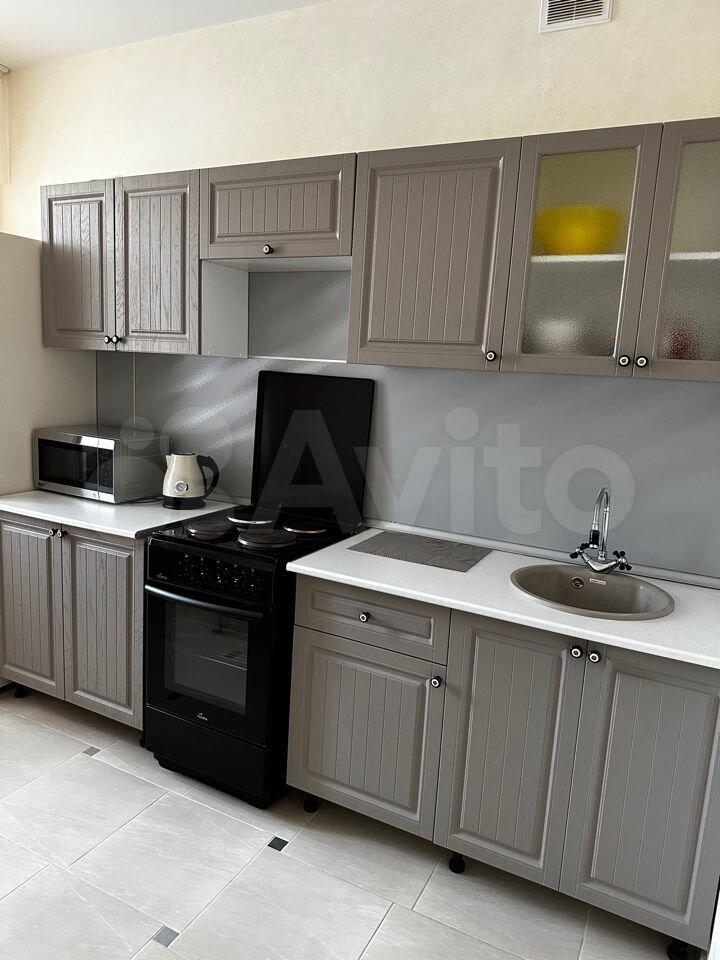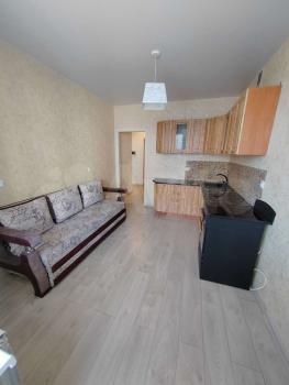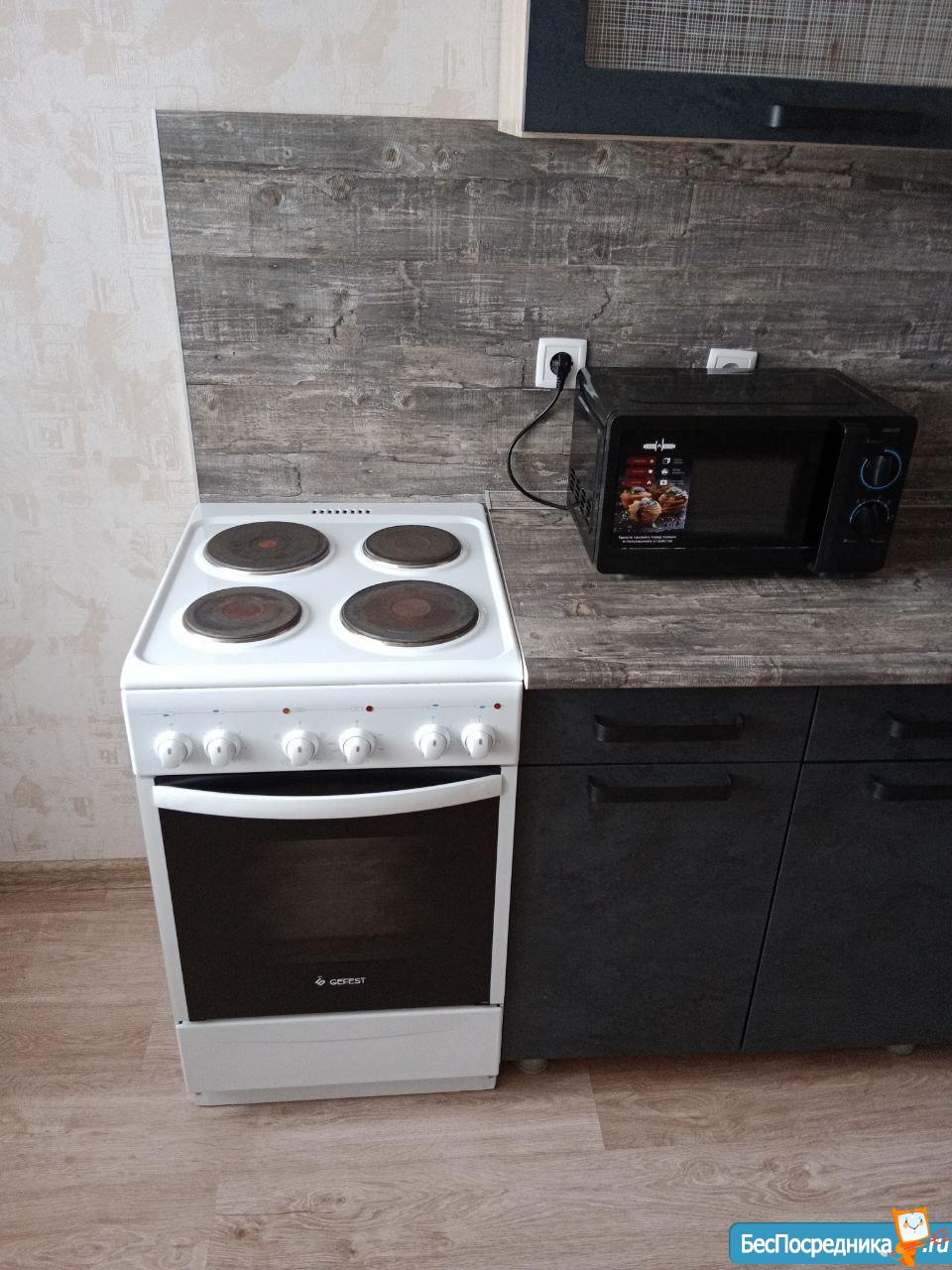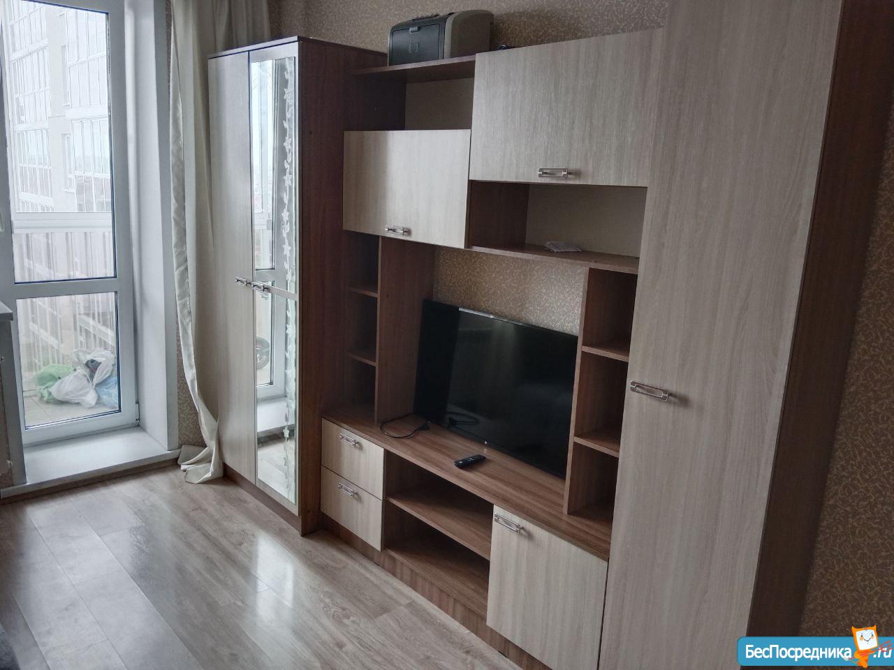 Новая, полностью меблированная, с техникой (телевизор, холодильник, печь, микроволновая печь, чайник, стиральная машина). Также предоставим гладильную доску и сушилку для белья. Имеются вместительные шкафы, в т.ч. большая гардеробная. Все новое.