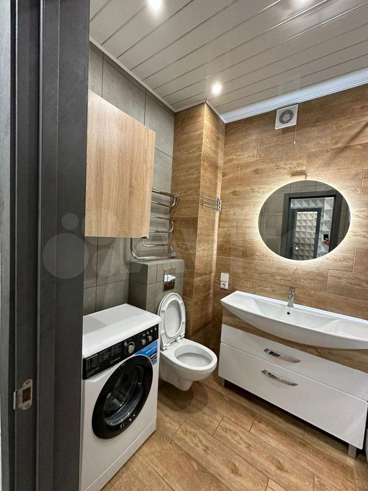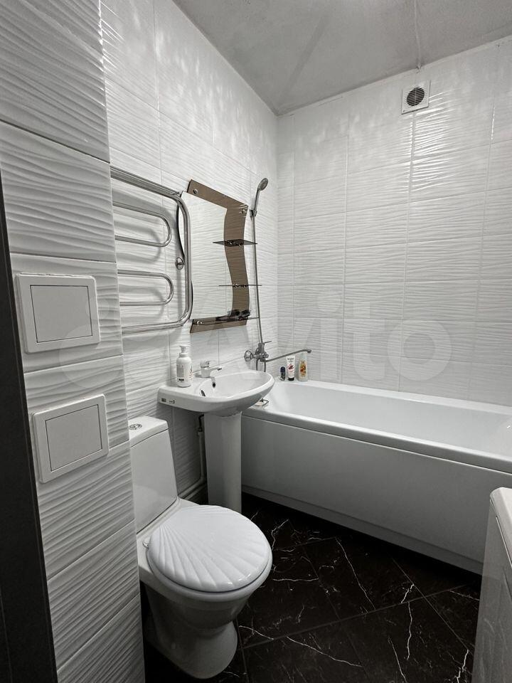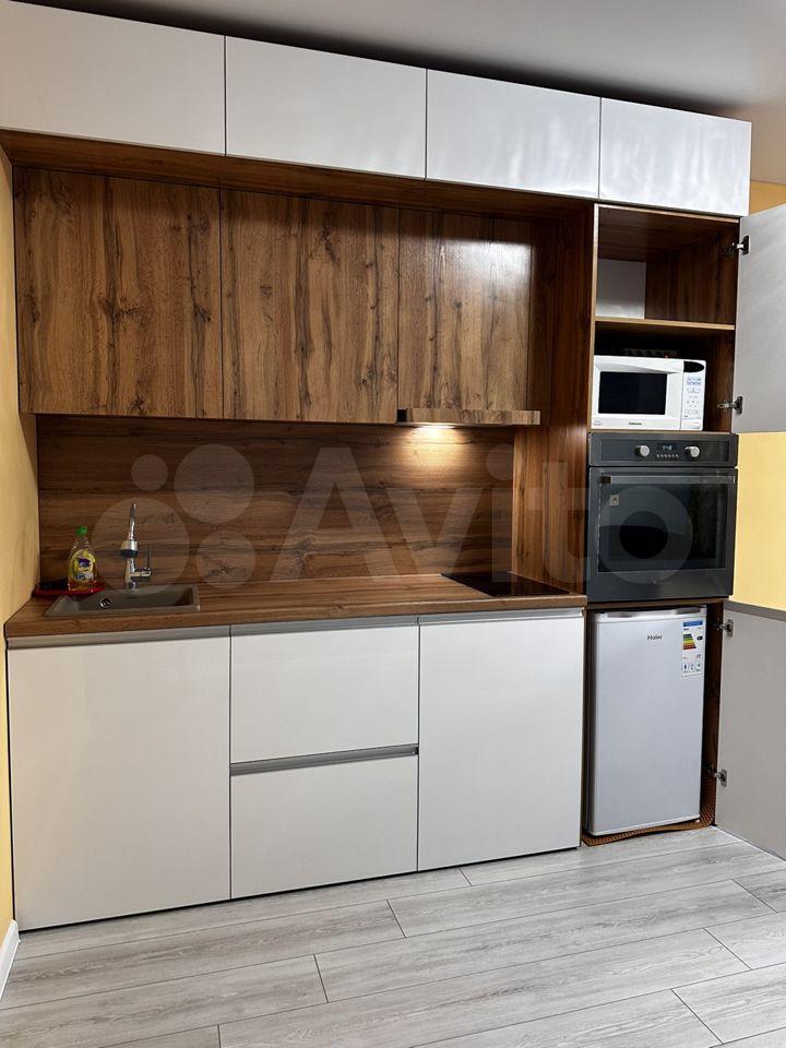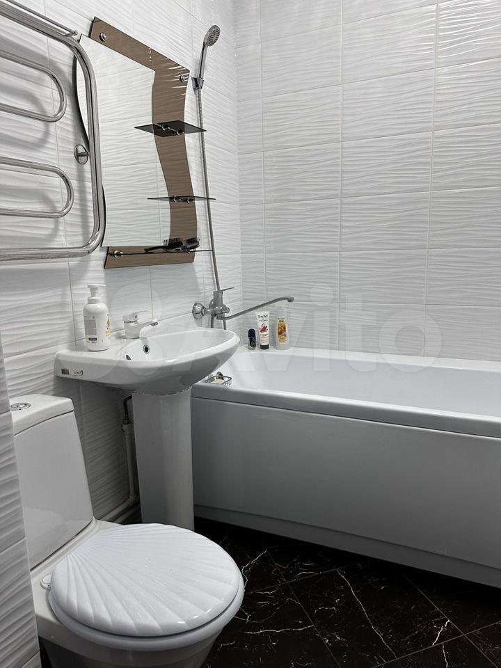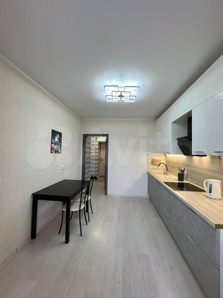 Новая, полностью меблированная, с техникой (телевизор, холодильник, печь, микроволновая печь, чайник, стиральная машина). Также предоставим гладильную доску и сушилку для белья. Имеются вместительные шкафы, в т.ч. большая гардеробная. Все новое.