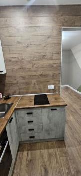 санузел - совмещённый, мебель - кухня, хранение одежды, спальные места, холодильник, плита, стиральная машина, водонагреватель, телевизор.
