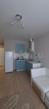 В студии для комфортного проживания есть диван, варочная панель, микроволновка, чайник , шкаф для одежды.