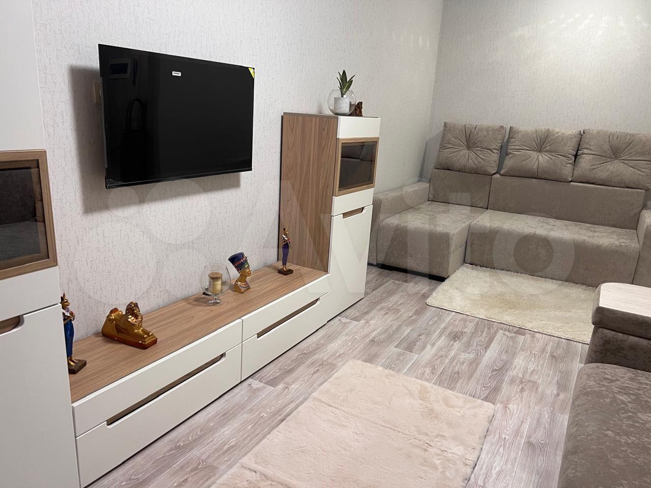 • Гостиная-кухня: Просторная зона, объединенная с кухней. Оснащена диваном, телевизором и журнальным столиком.