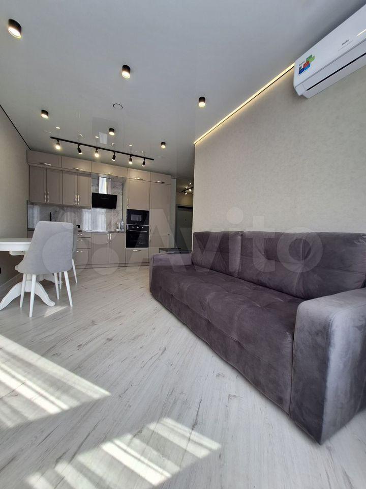 В квартире дизайнерский ремонт, всё продумано до мелочей. Диван с независимым пружинным блоком и спальным местом 200x150 см обеспечит комфортный сон, подвесная мебель сделают уборку быстрой и лёгкой.