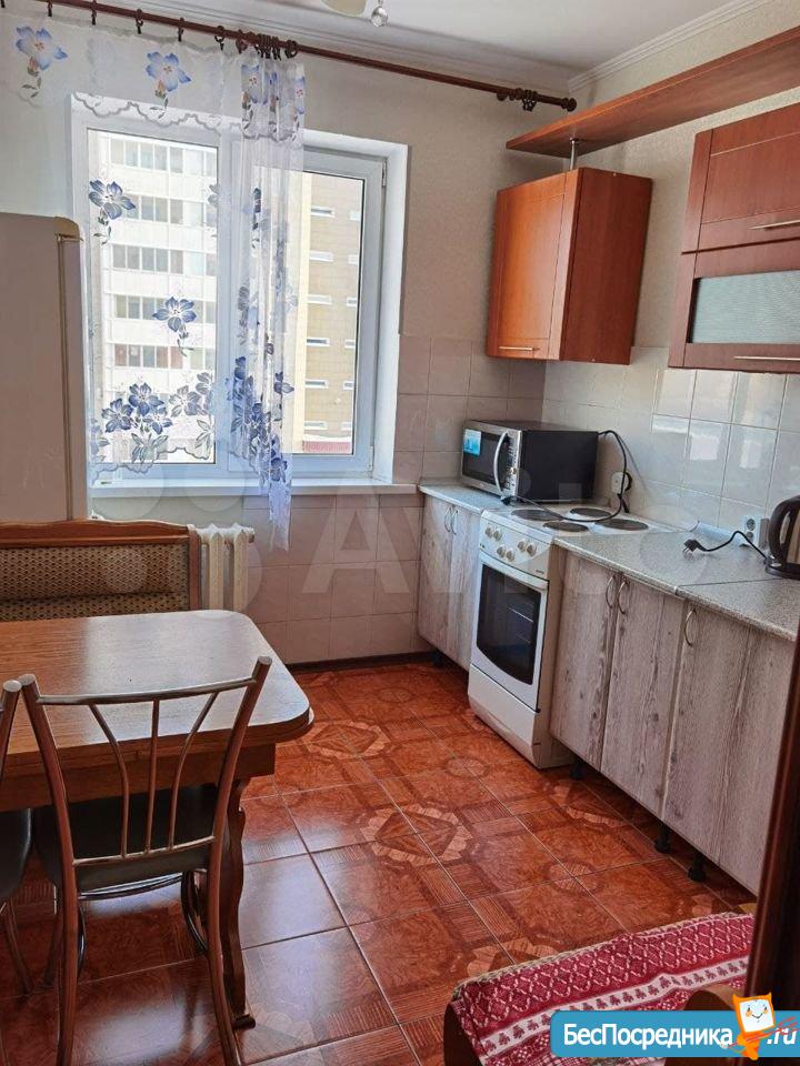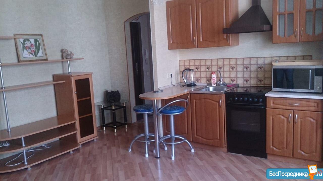 В квартире есть всё необходимое для комфортного проживания: на кухне установлена мебель, а также имеется стиральная машина. Удобная планировка включает отдельный санузел с ванной. Окна выходят на улицу, поэтому в квартире всегда светло и уютно.