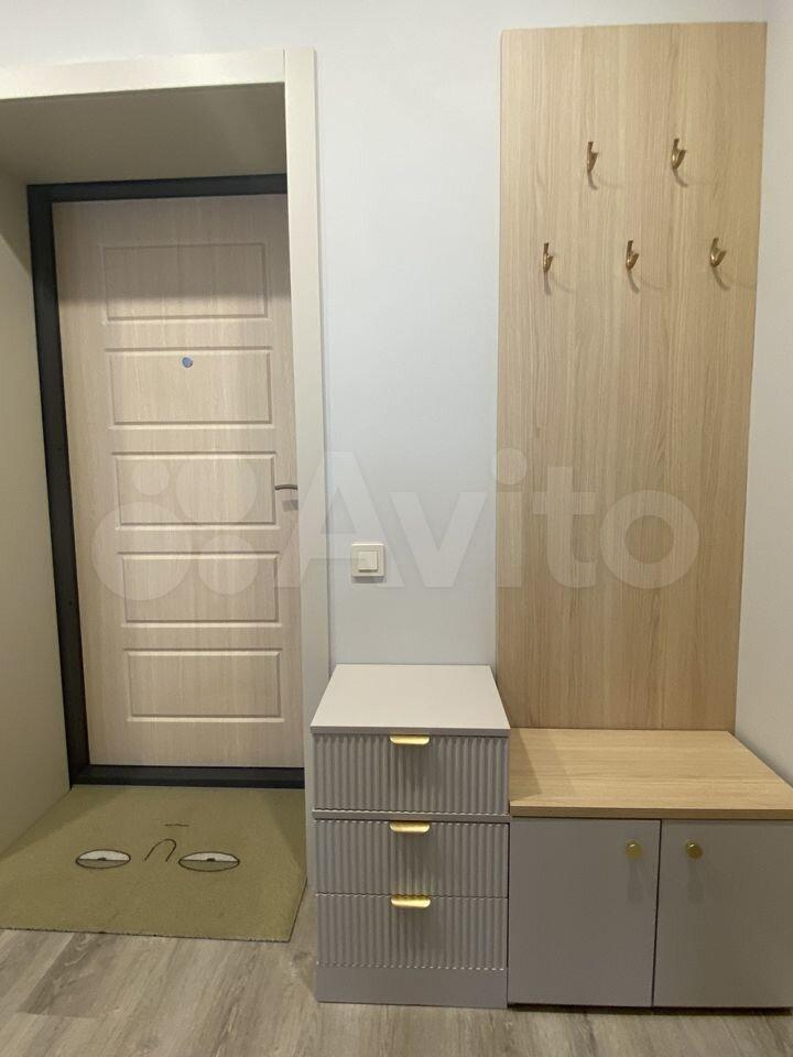 -в прихожей: зеркальный шкаф-купе и тумба для обуви