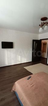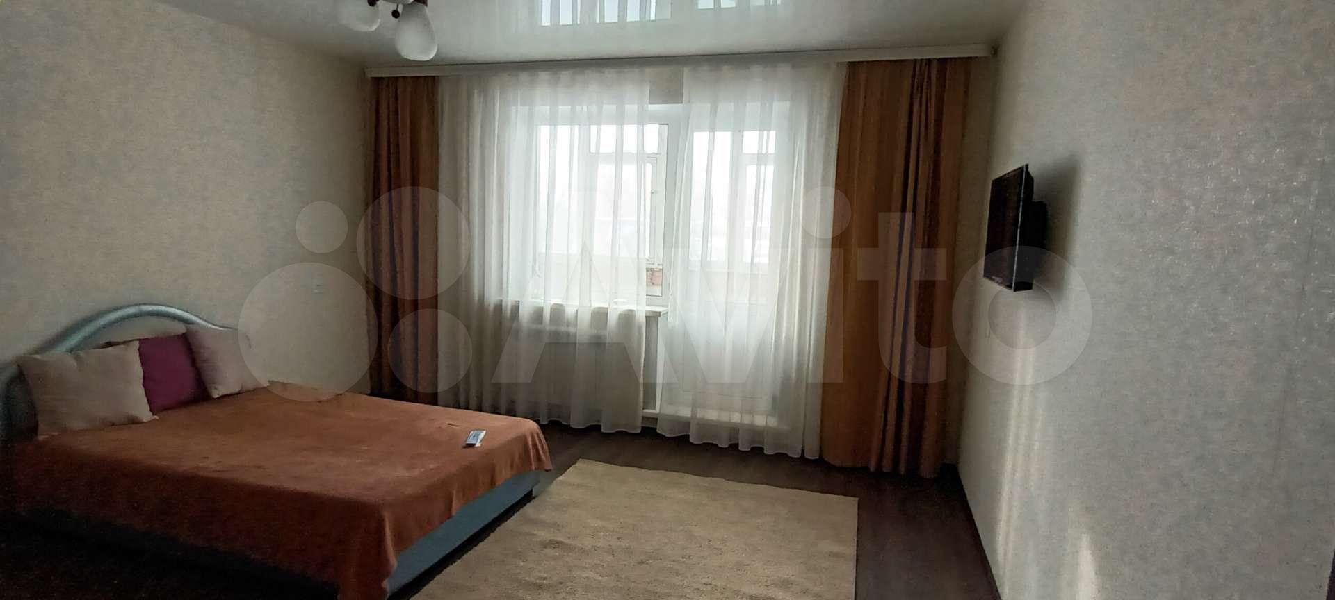 1 комн. кв 40 кв.м, нестанд. планировки, окна на две стороны (кухня на пр.Комсом, зал во двор). Комната 20м, кухня 9м, отдельный коридор 5м. В санузлах плитка, акриловая ванна, натяжные потолки, стены и пол выровнены, новая кровать 160х200.