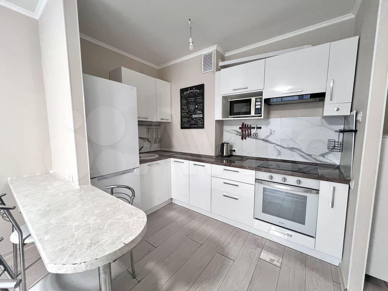 Чистая, светлая, укомплектована мебелью и бытовой техникой, есть просторная гардеробная и балкон.