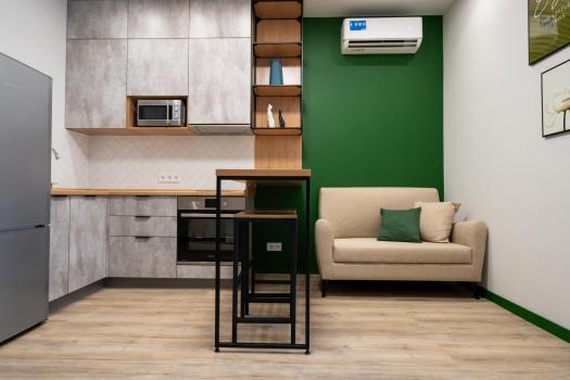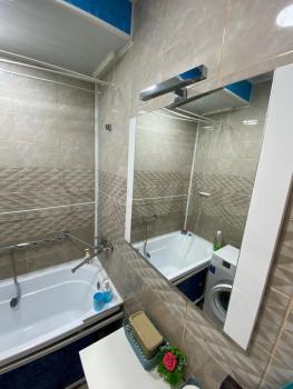 Качественный, дорогой,новый ремонт, высокие потолки. Хорошая мебель и техника в идеальном состоянии: двуспальная кровать, большой раскладной диван, рабочий стол, кухонная мебель, печь,огромный холодильник,кондиционер,телевизор, стиральная машина,водонагреватель,утюг, гардеробная, большой шкаф,все кухонные и спальные принадлежности