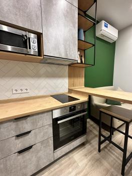 Сдается уютная и комфортная студия в новом, престижном районе. Дизайнерский ремонт осуществлялся максимально продумано, для удобного проживания. Можно сказать, для себя. В студии имеется все необходимое: дизайнерская мебель с большим количеством мест хранения, кондиционер, ТВ, интернет, плита, печь, вытяжка, микроволновая печь, холодильник, домофон, стиральная машина, душевая кабина, гигиенический душ, водонагреватель.