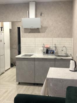 Качественный, дорогой,новый ремонт, высокие потолки. Хорошая мебель и техника в идеальном состоянии: двуспальная кровать, большой раскладной диван, рабочий стол, кухонная мебель со всей посудой, печь, холодильник,телевизор, стиральная машина,водонагреватель,утюг, большой шкаф,кондиционер.
