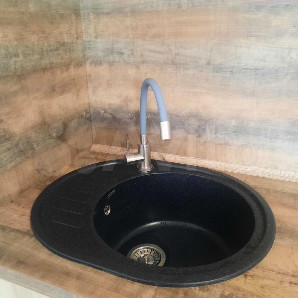 ▪️кухонный гарнитур с каменной мойкой, большой кухонный стол с табуретками, двухкомфорочная электрическая варочная панель, духовой шкаф, микроволновка, чайник, холодильник, набор кастрюль, сковорода, набор посуды, столовые приборы.