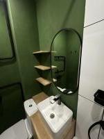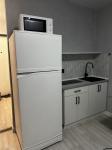 Есть все для комфортного проживания: холодильник, электрическая печь, микроволновая печь, стиральная машина, диван, шкаф, письменный стол