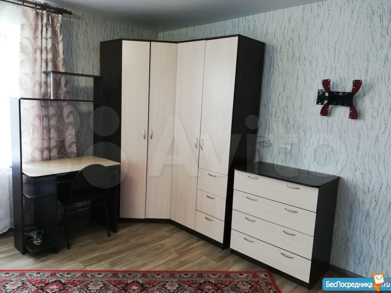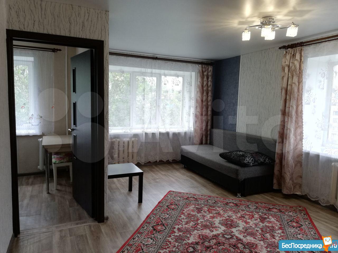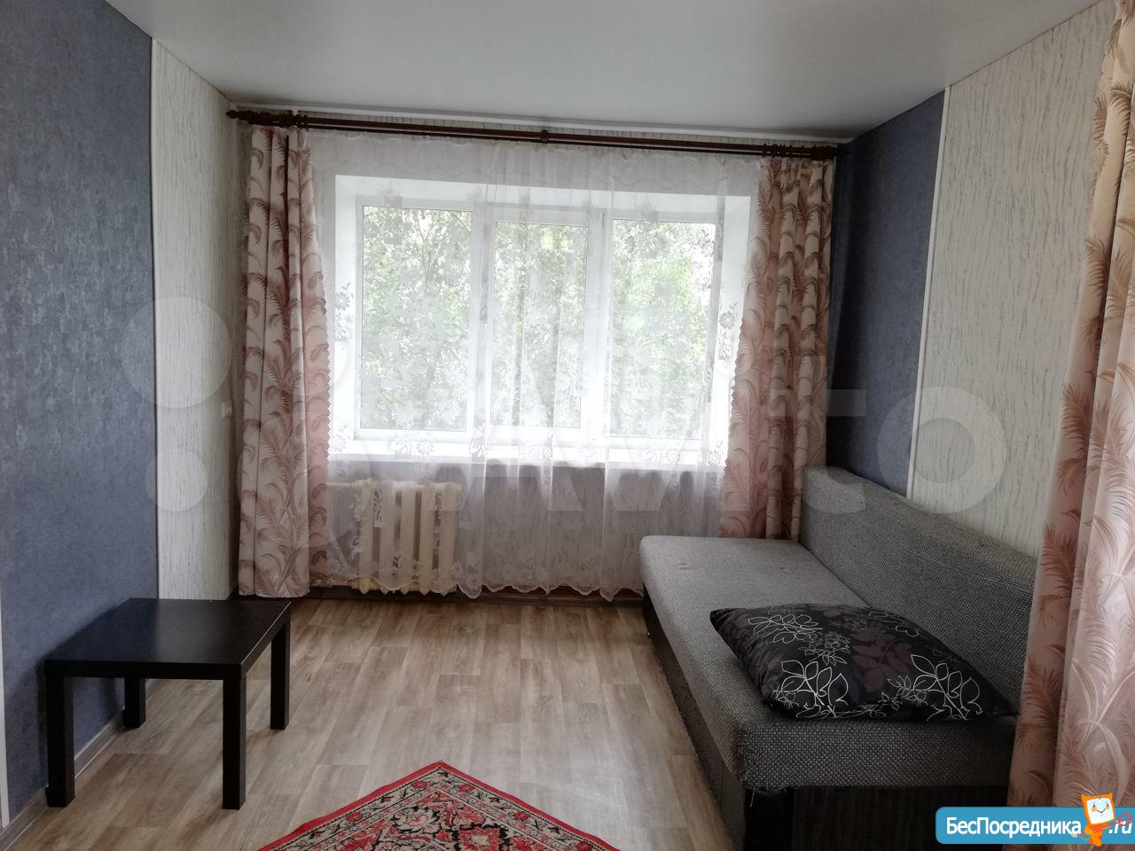 Сдам чистую, аккуратную квартиру на длительный срок. Кухня 6 квадратов, санузел совмещенный. Полностью мебелированная - кухонный гарнитур, обеденный стол, диван, шкаф угловой, шкаф платяной, комод, письменный стол. Бытовая техника - стиральная машина, плита, холодильник. Удачное расположение, остановка магазин "Юный техник", в самом доме продуктовый магазин. Рядом остановки, школа, детские сады. Арендная плата 15 000 + ком.платежи. Залог 8 000, при выезде возврат, перерасчет. Собственник.