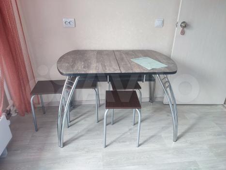 Из мебели и техники: диван раскладной, шкаф, кухонный гарнитур, плита индукционная настольная одноконфорочная, микроволновая печь, стол обеденный, стулья, холодильник, электрический чайник, стиральная машина. Нет телевизора.