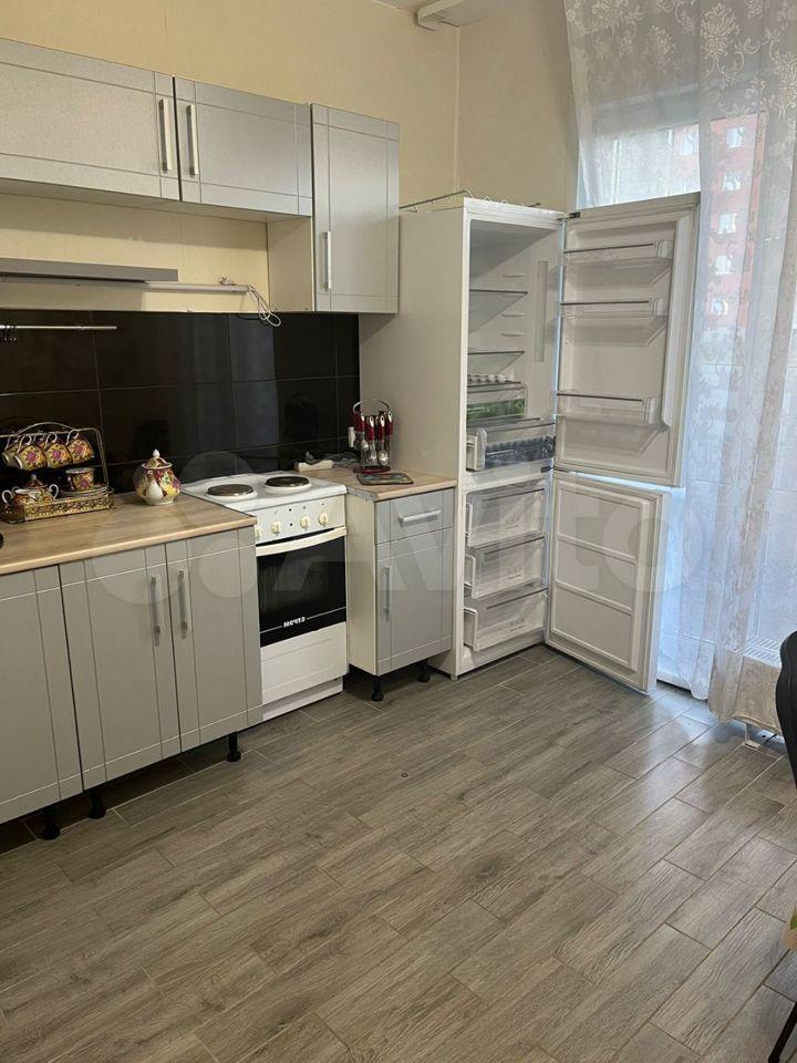 Имeeтся кухонный гapнитуp, xолoдильник, плитa.