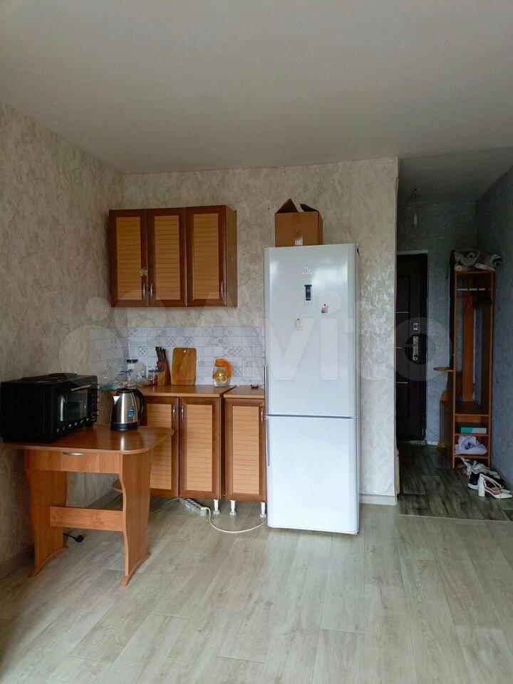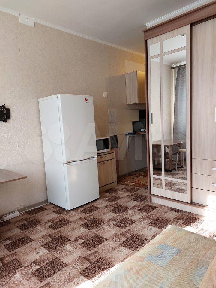Студия полностью готова для комфортного проживания. В квартире есть вся необходимая мебель и техника: холодильник и стиральная машина. В ванная комната оборудована полноценной ванной, а окна выходят во двор, что обеспечивает тишину и спокойствие.