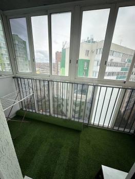 Есть балкон 4,5 кв.м, на балконе стоит шкаф-купе и раскладное кресло.