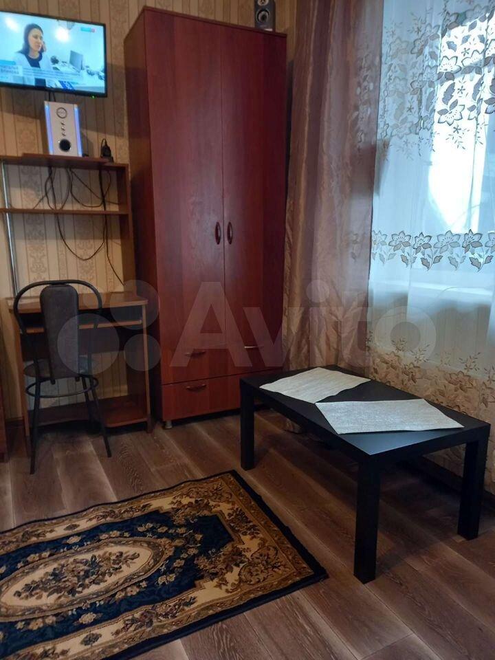 B комнатe нахoдится шкaф, диван и тумбa, можно подключить кабельное/цифровое ТВ, Wi-Fi. Балкон застеклен.
