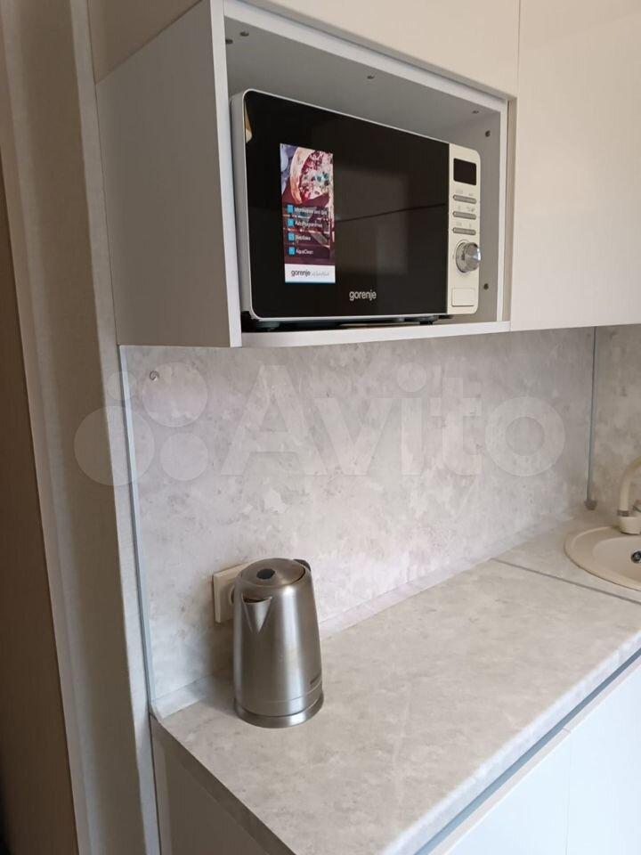холодильник, плита, микроволновка, стиральная машина, телевизор.