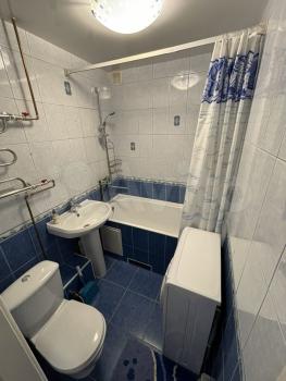 В хорошем состоянии. Косметический ремонт. Дом находится в дворовой части. В ночное время тихо. Есть мебель. Телевизор. Сан узел раздельный. Ванная и туалетная комнаты в хорошем состоянии.