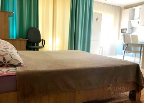 Квартира представляет собой уютное помещение, оборудованное всем необходимым для комфортного проживания. В комнате расположена двуспальная кровать, письменный стол с креслом, диван и тумба. Также имеется кондиционер, холодильник и шторы на окнах, которые создают атмосферу уюта и защищают от яркого света. Просторное пространство с нейтральной цветовой гаммой включает ковер на полу и современное освещение. Квартира предоставляется без залога, что делает предложение особенно привлекательным.