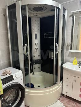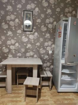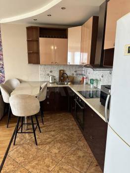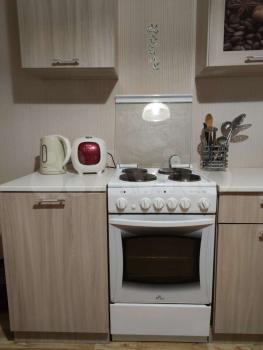 В квартире выполнен косметический ремонт. На кухне есть печь и небольшой гарнитур. Ванная комната оборудована душевой кабиной. Квартира имеет одну лоджию, окна выходят на проспект.