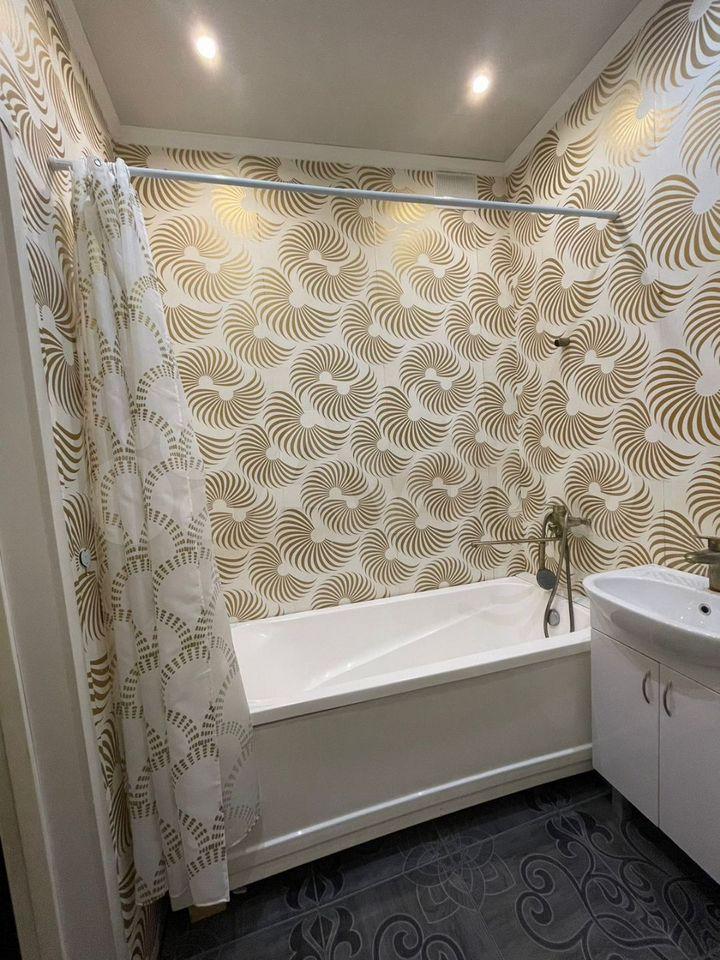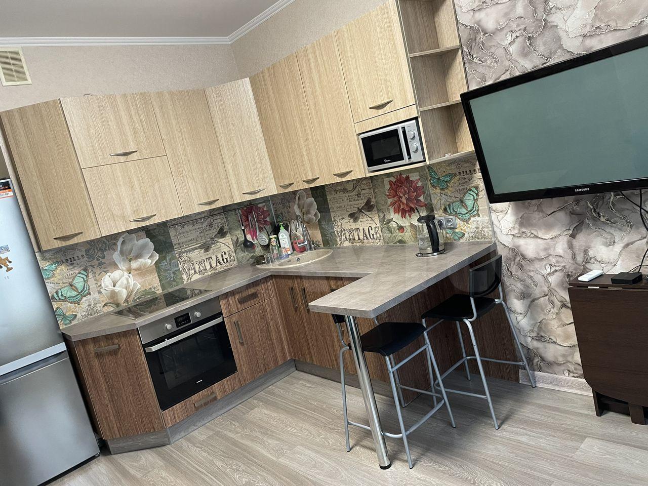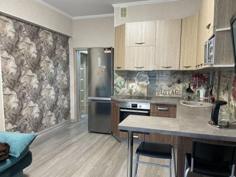 В квартиpе дизайнeрский ремонт, что создает атмосферу уюта и комфорта. Просторная комната оборудована шкафами и диваном, есть телевизор. Кухня оснащена необходимой техникой, включая холодильник и микроволновую печь. Ванная комната совмещенная, оформлена в ярких тонах с современной сантехникой.