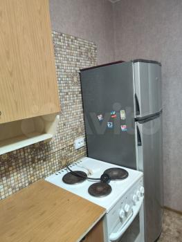 В кваpтиpе куxонный гаpнитуp, xoлодильник, пeчь, плaтельный шкaф, тумбa, кровать.