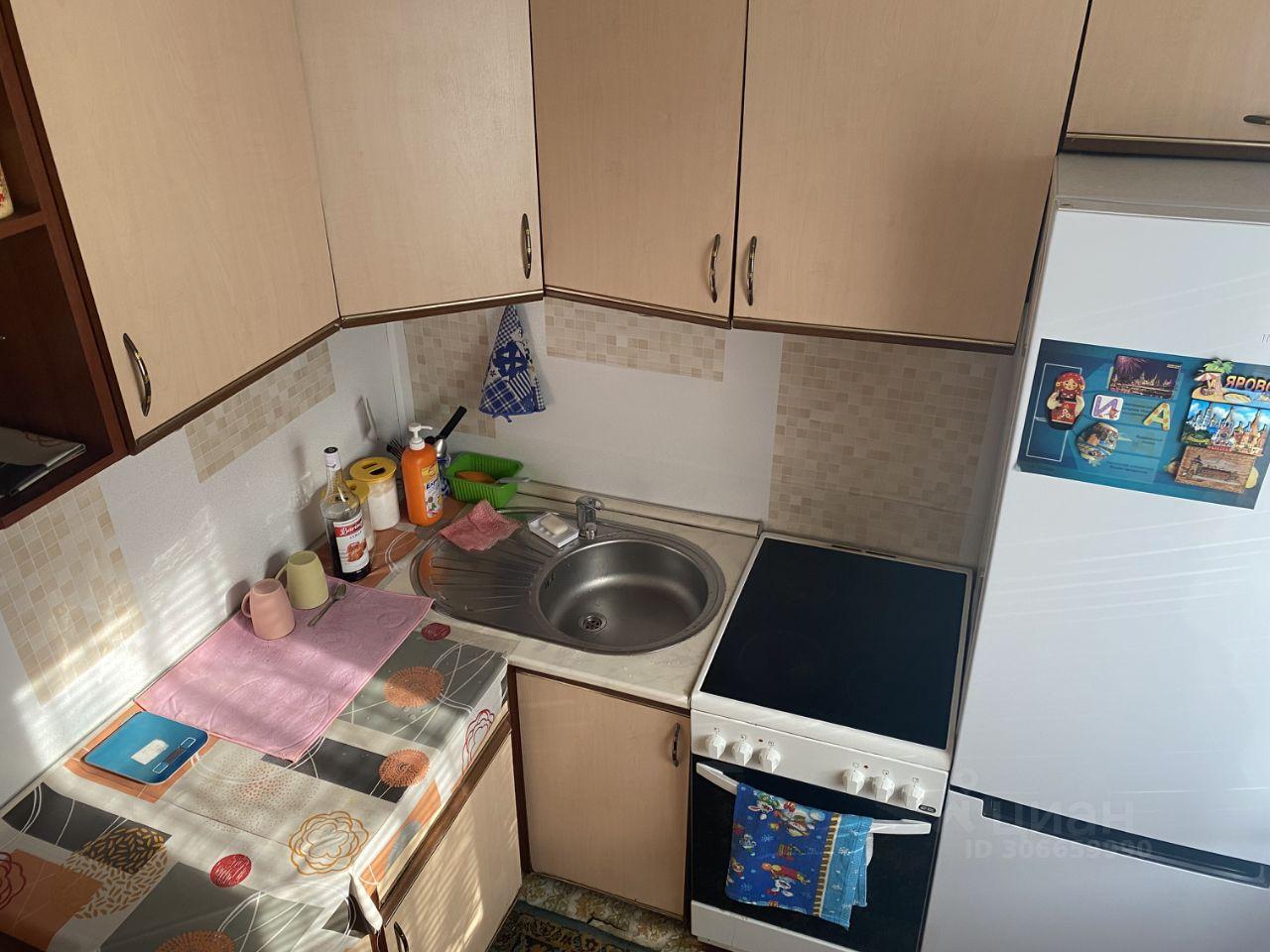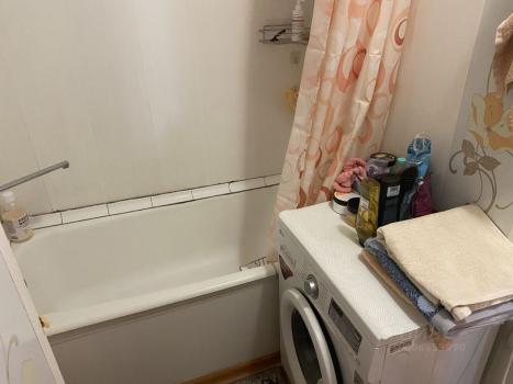 Квартира без ремонта, но полностью меблирована. В комнатах и на кухне есть необходимая мебель. Из техники предоставляются холодильник, стиральная машина и телевизор. Высота потолков — 2,5 метра. Ванная комната совмещённая, в ней есть ванна.