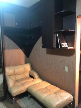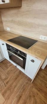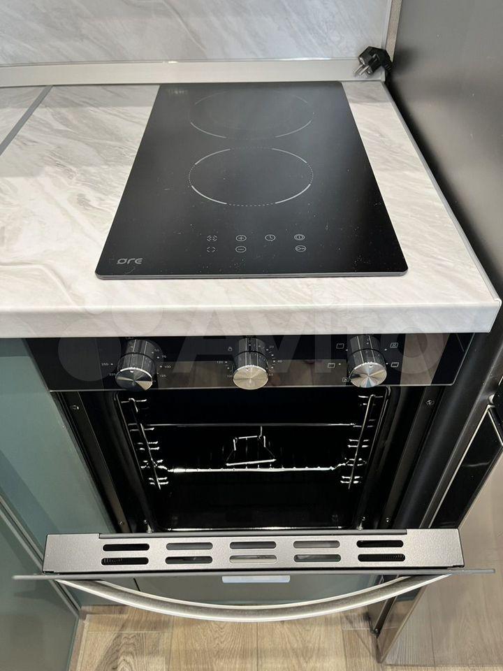 Кухня оборудована: холодильником, двухкомфорочной плитой, микроволновкой, чайником, обеденной зоной с кухонным столом, 2 удобных кухонных стула (вся мебель и техника абсолютно новые, чистые).